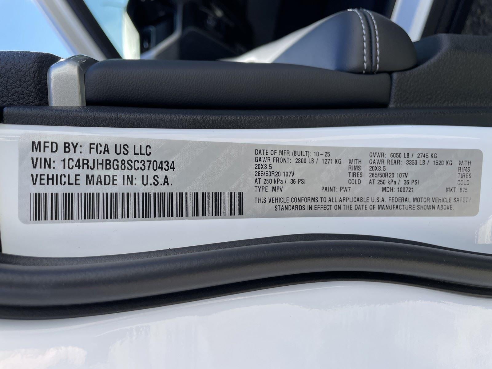 **BLACK APPEARANCE PACKAGE** ($2,725 ADD TO MSRP), CUSTOMER PREFERRED PACKAGE 22E, 3.6L V6, 8-SPD AUTO 850RE TRANSMISSION, 4WD, 20"" WHEELS, HEATED STEERING WHEEL, KEYLESS ENTRY, PUSH BUTTON START, REMOTE START, LEATHER, POWER DRIVER'S SEAT W/ MEMORY, POWER HEATED FRONT SEATS, HEATED SECOND-ROW SEATS, UCONNECT® 5, 10.1 IN SCREEN DISPLAY, APPLE CARPLAY, ANDROID AUTO, Bluetooth® FOR HANDS-FREE PHONE, SIRIUS XM RADIO, REAR VIEW CAMERA, ADAPTIVE CRUISE CONTROL WITH STOP AND GO, NAVIGATION, LED HEADLAMPS, POWER LIFTGATE, PARK-ASSIST, BLIND SPOT ALERT, CROSS-TRAFFIC ALERT, HILL-START ASSIST