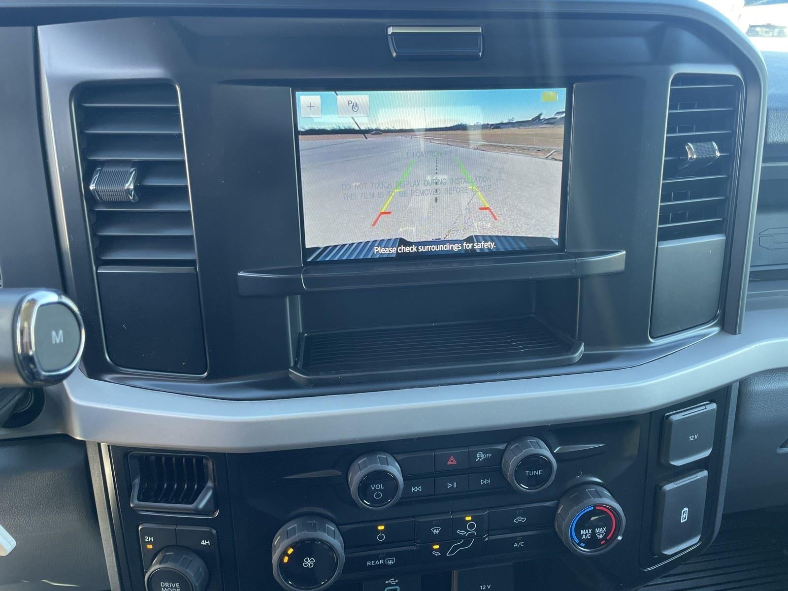 - The vehicle is equipped with a camera that displays an image of the area behind the vehicle on an interior display.