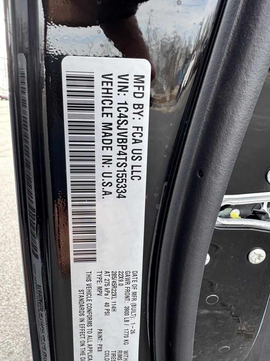 **CUSTOMER PREFERRED PACKAGE 29D** ($7,000 ADD TO MSRP), **BLACK APPEARANCE PACKAGE** ($1,895 ADD TO MSRP), HIGH GLOSS BLACK EXTERIOR PAINT, HURRICANE TWIN TURBO WITH STOP/START, 8-SPEED AUTOMATIC TRANSMISSION, 4WD, 22'' WHEELS, KEYLESS ENTRY, PUSH BUTTON START, REMOTE START, TRI-PANE PANORAMIC SUNROOF, HEATED STEERING WHEEL, HEATED & COOLED FRONT SEATS, HEATED SECOND-ROW SEATS, POWER DRIVER AND PASSENGER SEAT, 12'' IN SCREEN DISPLAY, UCONNECT 5, APPLE CARPLAY, ANDROID AUTO, Bluetooth® FOR HANDS-FREE PHONE, 4G LTE WI-FI HOT SPOT, ALPINE AUDIO, REAR VIEW CAMERA, 360 SURROUND-VIEW CAMERA, RAIN-SENSITIVE WINDSHIELD WIPERS, POWER LIFTGATE, POWER DEPLOYABLE RUNNING BOARDS, LEATHER SEATS, ACTIVE DRIVING ASSIST SYSTEM, ACTIVE LANE-MANAGEMENT SYSTEM, FULL-SPEED FORWARD-COLLISION WARNING PLUS, INTERSECTION COLLISION-ASSIST SYSTEM, DROWSY DRIVER DETECTION, BLIND-SPOT AND REAR CROSS-PATH DETECTION, TRAFFIC SIGN RECOGNITION, PEDESTRIAN EMERGENCY-BRAKING, HILL-START ASSIST, SENTRY KEY THEFT-DETERRENT SYSTEM, 7-PIN AND 4-PIN WIRING HARNESS, CLASS IV RECEIVER-HITCH