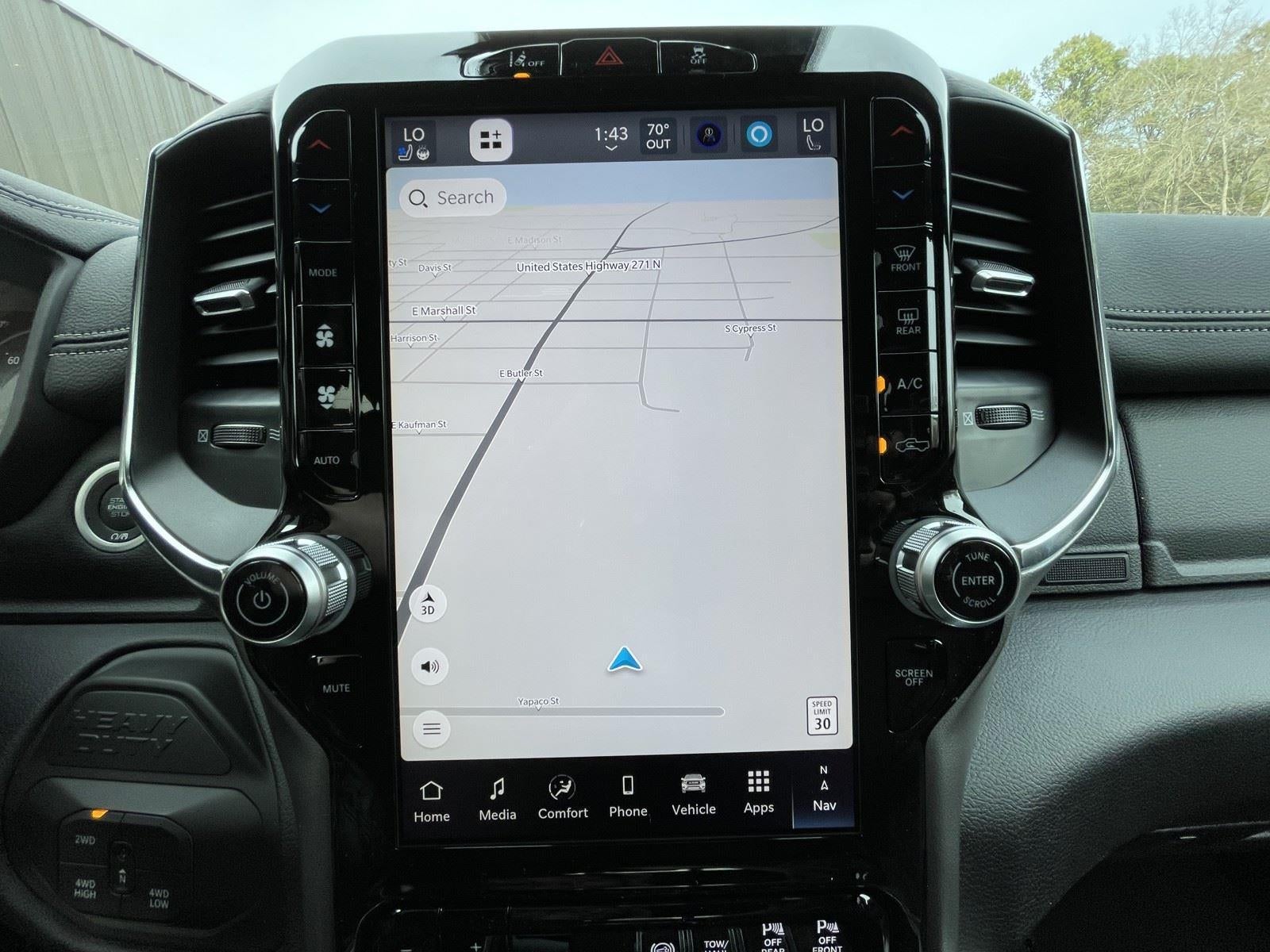- The vehicle is equipped with a built-in voice activated navigation system.
