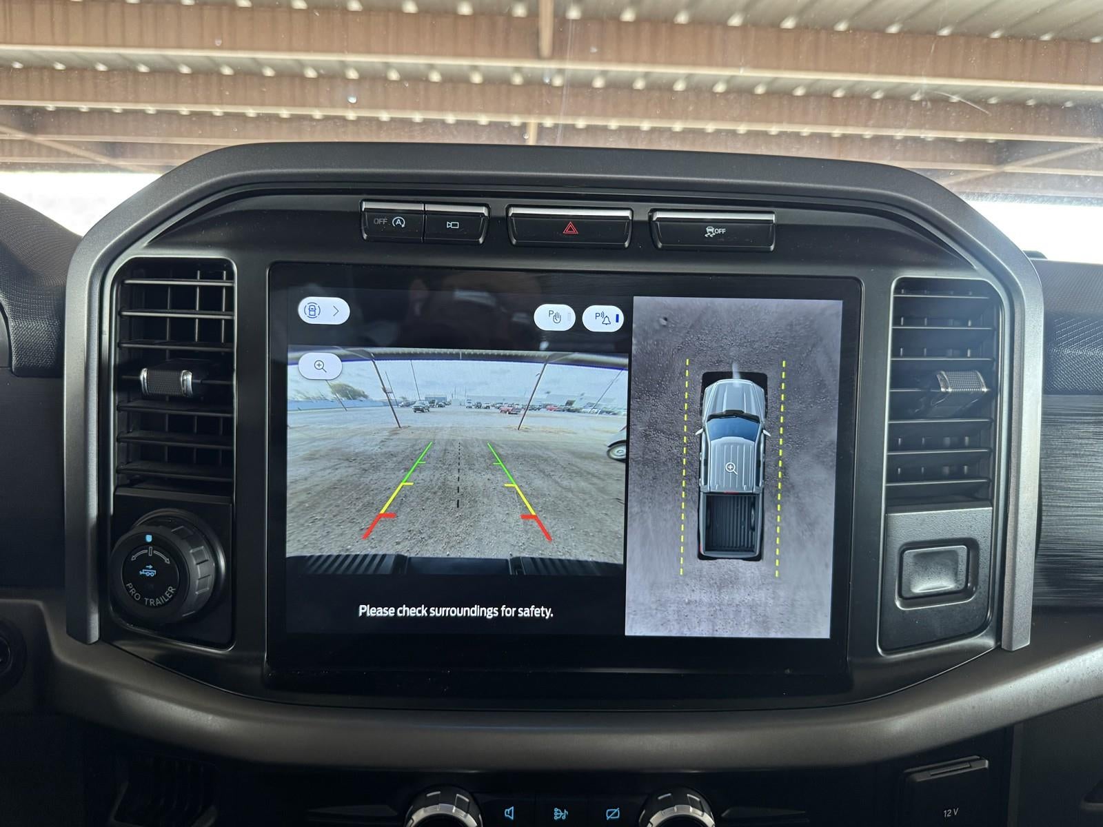- The vehicle is equipped with a camera that displays an image of the area behind the vehicle on an interior display.