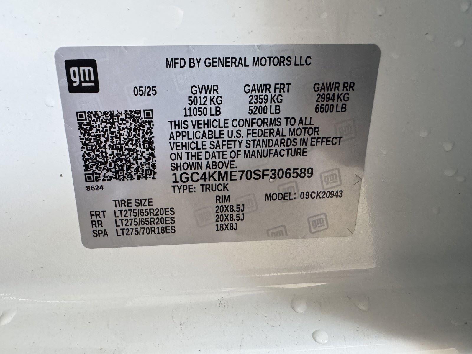 - 050 lbs. (5012 kg) (Included and only available with CC20743 model and (L5P) Duramax 6.6L Turbo-Diesel V8 engine with 18" or 20" wheels or CK20943 model and (L8T) 6.6L V8 gas engine with 18" or 20" wheels.)