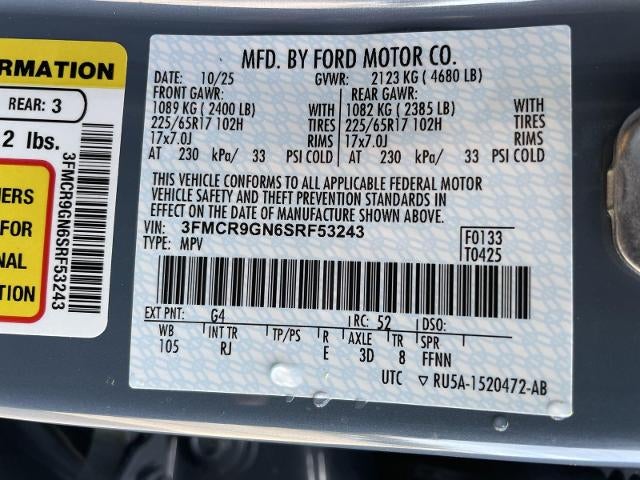 Clean Carfax! One Owner!**WARRANTY REMAINING: 35 MONTHS OR 35,987 MILES****CONVENIENCE PACKAGE** ($1,895 ADD TO MSRP), AZURE GRAY METALLIC TRI-COAT, EQUIPMENT GROUP 250A, 1.5L, 8-SPEED AUTO TRANSMISSION, 4WD, KEYLESS ENTRY, PUSH BUTTON START, REMOTE START, POWER MOONROOF, 13.2'' IN SCREEN DISPLAY, SYNC 4, SIRIUSXM, FORDPASS CONNECT, FORD CO-PILOT360 ASSIST, REAR VIEW CAMERA, LED HEADLAMPS, LED TAILLAMPS, LIFTGATE W/ LIFTGLASS, SECURILOCK ANTI-THEFT SYSTEM, SOS POST-CRASH ALERT SYSTEM