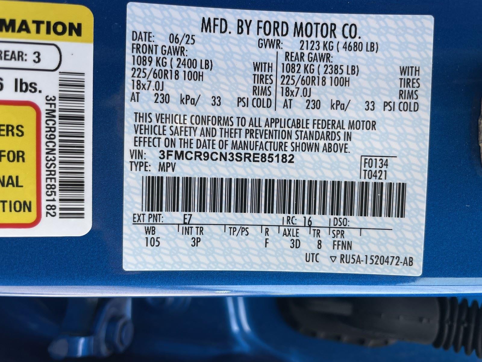 VIN: 3FMCR9CN3SRE85182