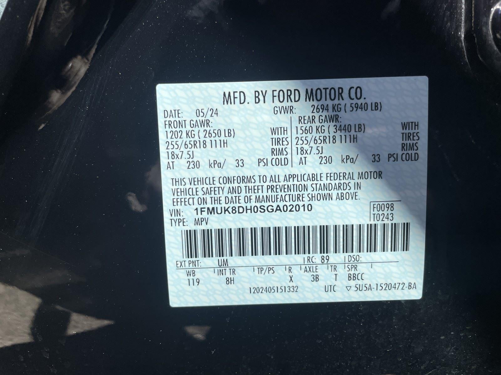 Clean Carfax! One Owner!**WARRANTY REMAINING: 17 MONTHS OR 21,168 MILES**EQUIPMENT GROUP 200A, 2.3L, 10-SPEED AUTO TRANSMISSION, 4WD, KEYLESS ENTRY, PUSH BUTTON START, REMOTE START, FRONT ROW HEATED SEATS, POWER DRIVER SEAT, POWER PASSENGER SEAT, 13.2"""" IN SCREEN DISPLAY, APPLE CARPLAY, ANDROID AUTO, Bluetooth® FOR HANDS-FREE PHONE, SIRIUSXM, FORD CO-PILOT360 ASSIST, FORDPASS CONNECT, REAR VIEW CAMERA, LED HEADLAMPS, LED TAILLAMPS, POWER LIFTGATE, CLASS III TRAILER TOW PKG, TRAILER SWAY CONTROL, HILL START ASSIST, PERSONAL SAFETY SYSTEM, SOS POST-CRASH ALERT SYSTEM